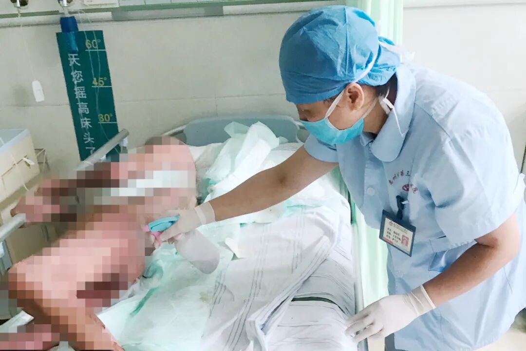 但患者痛覺敏感,不信任醫(yī)護人員,還未觸碰到他的皮膚,他就大聲嚎叫了,即便用了鎮(zhèn)靜藥也只能稍微緩解他的情緒。每次護士換藥,這位大叔就會破口大罵,吐出一連串臟話。為了取得他的配合,護士妹妹們都不敢說他,只能哄著他。像這種大創(chuàng)面的換藥,本身程序就多,時間也長,大家忍著難以接受的氣味,還要忍受他的臟話,心里還是有些小委屈的,但是看他孑然一身又被疾病折磨,想想也就釋然了,大家對他更多的是同情和理解。