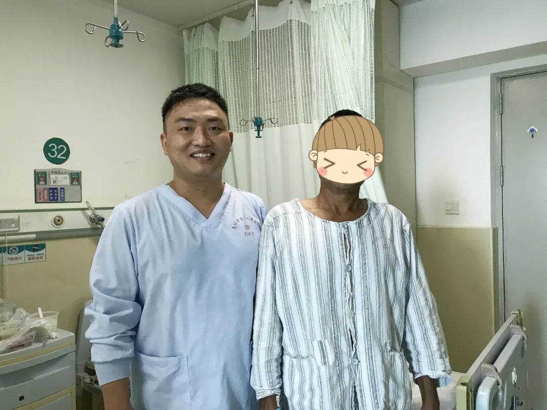 下面一張圖片是急診醫(yī)學(xué)中心黨支部黨員王亞威和一位大叔在病房的合影,兩人笑臉如靨,第一次見面卻如同親人一般。原來,他們之間還有個(gè)溫情的小故事呢。