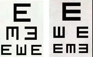 通過外部刺激以及眼睛暫時(shí)的放松休息,加上自己的心理暗示,會(huì)使體驗(yàn)者出現(xiàn)視力變好的“假象”。而某些機(jī)構(gòu)在進(jìn)行針灸或按摩前使用標(biāo)準(zhǔn)視力表,“治療”后則換上不符合國家標(biāo)準(zhǔn)的、更易辨認(rèn)的視力表(如下圖所示),讓患者以為真能治療近視。相關(guān)部門也早就發(fā)文“打假”,近視是可以矯正但不能治愈。因此無論是檢查眼睛還是配鏡矯正,都應(yīng)去專業(yè)的眼科???,避免上當(dāng)受騙,對(duì)眼睛造成二次傷害。
