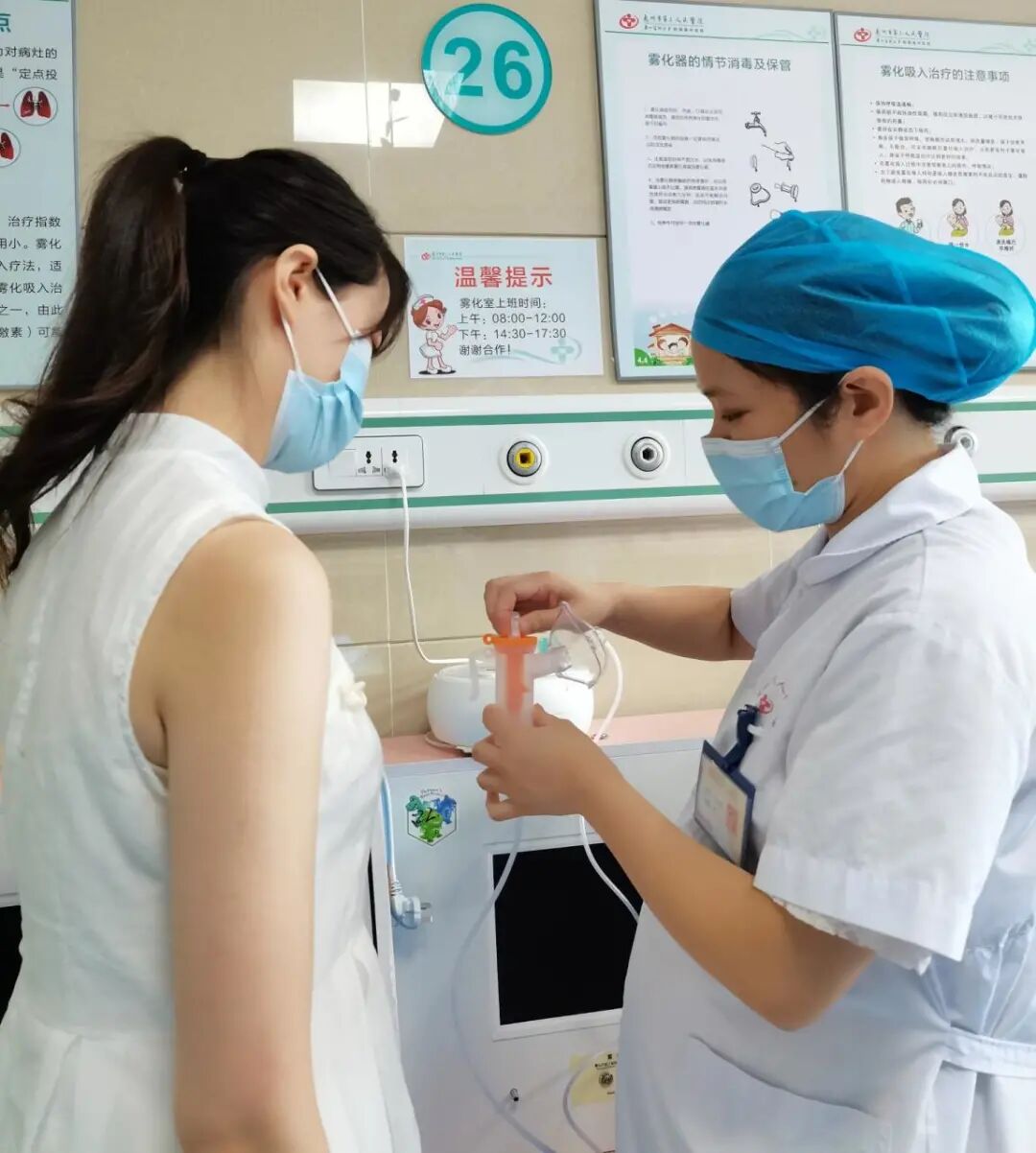 兒童霧化室的護(hù)士在給家長租借霧化機(jī)時,都會進(jìn)行一對一培訓(xùn),告知家長霧化機(jī)的使用方法和注意事項(xiàng),使家長快速、準(zhǔn)確、掌握霧化機(jī)的使用。