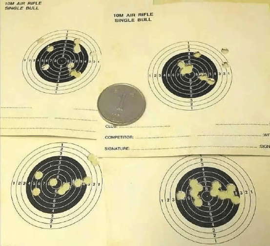 你知道10m氣步槍比賽用靶的有多大嗎?根據(jù)官方數(shù)據(jù),1環(huán)直徑45.5mm,4環(huán)直徑30.5mm,10環(huán)直徑0.5mm。也就是說4環(huán)靶直徑大約相當(dāng)于1元硬幣大小,而10環(huán)靶心基本上就是針尖大小!如果把1元硬幣放到10米以外,還要讓你擊中只有針尖大小的0.5mm以內(nèi)的地方,難度可以想象!
