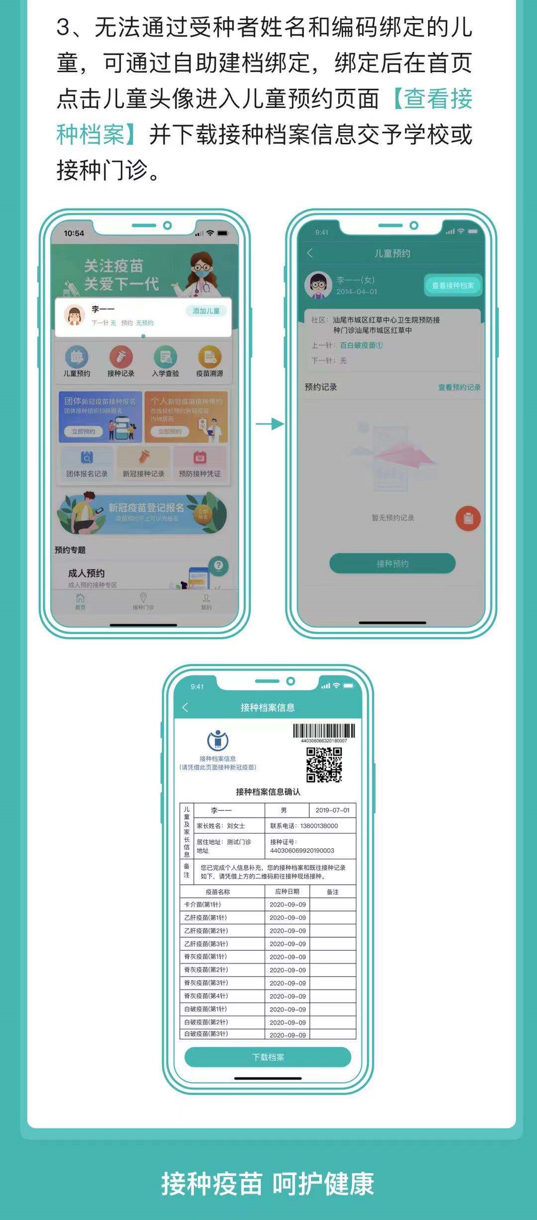 出現(xiàn)這種情況,不要慌!兒童要向醫(yī)務(wù)人員或?qū)W校提供本人及其父親和母親的姓名、身份證和聯(lián)系電話等信息,接種時(shí)攜帶兒童、家長身份證原件前往接種門診,由醫(yī)務(wù)人員進(jìn)行檔案查找實(shí)現(xiàn)定位錄入,如確實(shí)系統(tǒng)中找不到歷史檔案的,則由醫(yī)務(wù)人員手工錄入受種者信息,進(jìn)行新建檔。