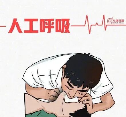 30次胸外按壓后,開(kāi)放氣道,如患者仍無(wú)呼吸(或嘆息樣呼吸)時(shí),應(yīng)立即進(jìn)行2次人工呼吸。人工呼吸是指施救者向患者口(鼻)中吹氣,使其獲得氧氣,以維持生命。