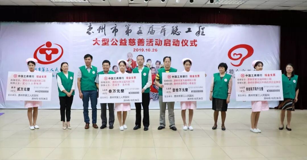 2019年10月26日,惠州市第三人民醫(yī)院堅(jiān)守初心、勇?lián)姑?,與香港耳聽(tīng)心言基金延續(xù)公益慈善正能量,隆重舉辦惠州市第五屆耳聰工程大型公益慈善活動(dòng),以期讓更多聽(tīng)障兒童開(kāi)啟有聲世界,讓更多耳疾患者重獲健康!