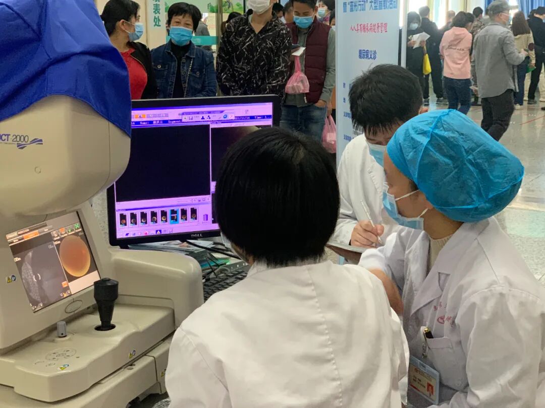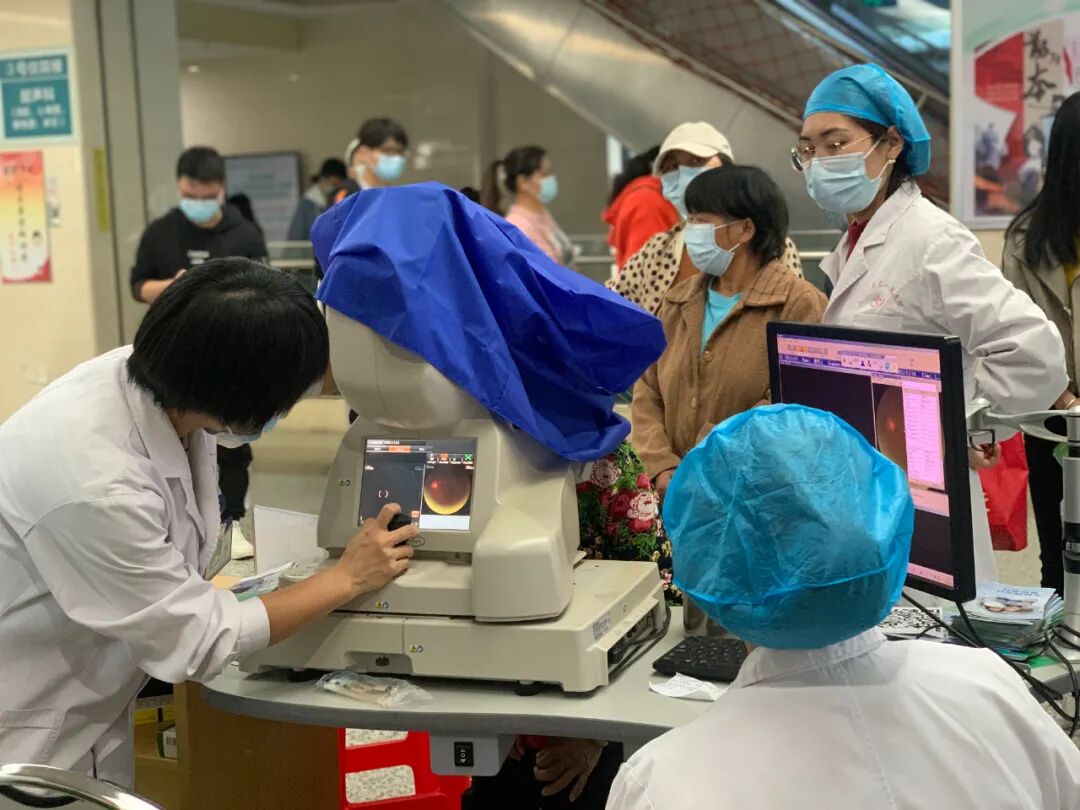 此次活動(dòng),惠州三院眼科醫(yī)護(hù)團(tuán)隊(duì)也參與其中。段娜副主任醫(yī)師和周秀嫦護(hù)師為有眼底病變風(fēng)險(xiǎn)的糖尿病患者行眼底照相,并針對糖尿病視網(wǎng)膜病變進(jìn)行宣教。