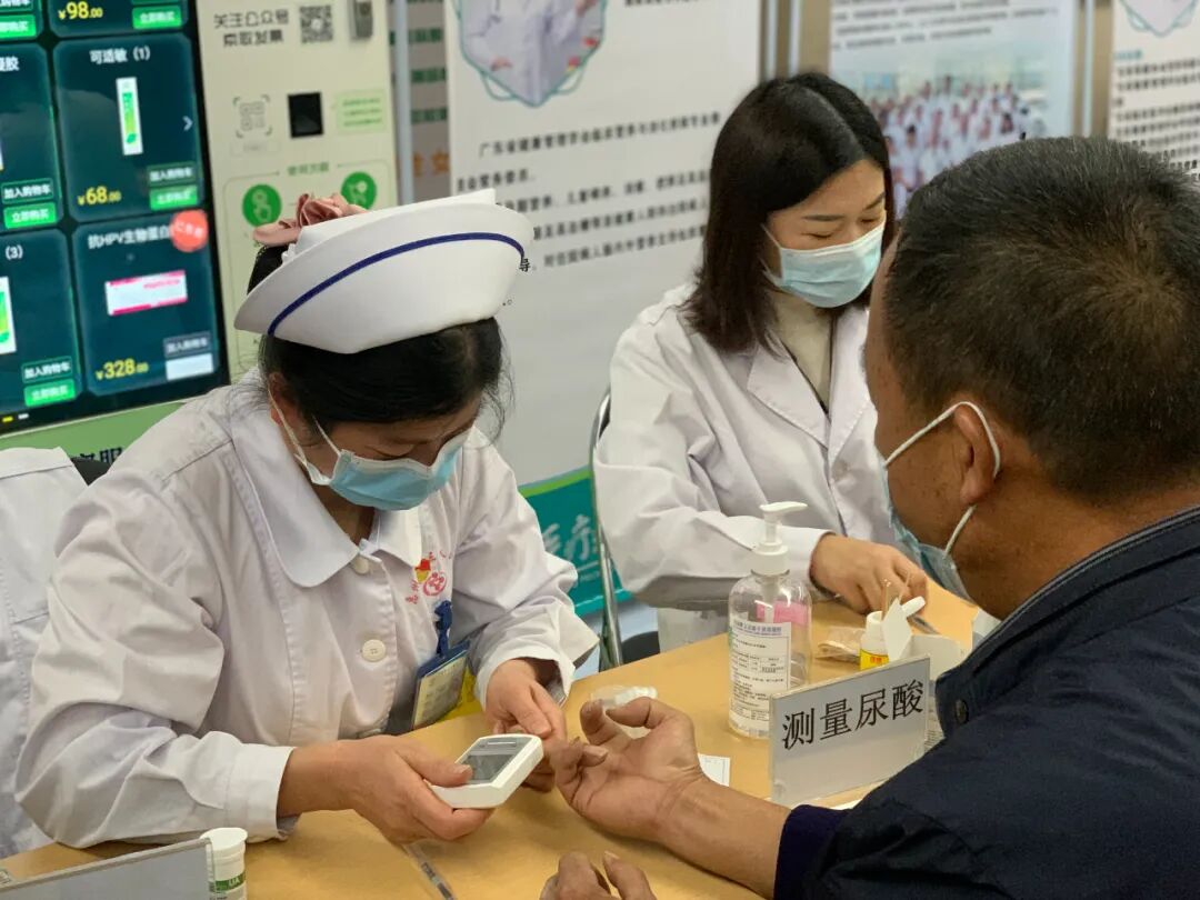 惠州三院門診及內(nèi)分泌科護(hù)理團(tuán)隊(duì)為前來咨詢就診的糖尿病患者免費(fèi)測試血糖、血壓、尿酸等,并進(jìn)行相關(guān)的糖尿病教育活動(dòng)、