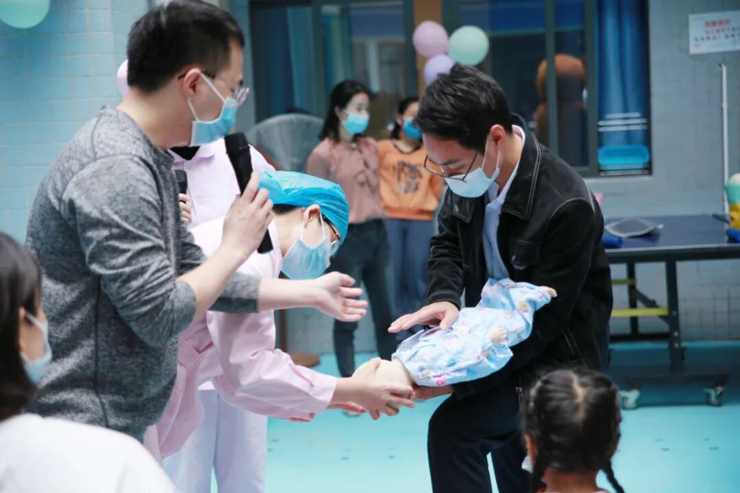 為預防孩子意外事故的發(fā)生,提高家長的急救意識,新生兒科護士余燕鳳現(xiàn)場教學海姆立克急救法。每位家長都很認真地學習,紛紛在現(xiàn)場親自操作一遍,讓專業(yè)的醫(yī)護人員進行糾正和指導。