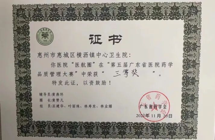 在《第五屆醫(yī)院藥學(xué)品質(zhì)管理大賽》的最后,廣東省醫(yī)院藥學(xué)品質(zhì)管理專(zhuān)業(yè)委員會(huì)主委葉麗卡主任和副主委金偉軍主任高度贊揚(yáng)了惠州市第三人民醫(yī)院積極利用品質(zhì)管理工具開(kāi)展藥學(xué)工作及推廣,主動(dòng)作為帶動(dòng)基層醫(yī)院使用質(zhì)量管理工作。橫瀝鎮(zhèn)中心衛(wèi)生院作為本次參賽隊(duì)里唯一一家鄉(xiāng)鎮(zhèn)衛(wèi)生院,在三院的帶領(lǐng)下積極開(kāi)展品管圈并大膽嘗試參賽,與眾三甲醫(yī)院同臺(tái)競(jìng)技,也反映出惠州三院醫(yī)聯(lián)體功底扎實(shí)、成效明顯,贏得了專(zhuān)家評(píng)委的一致好評(píng)。