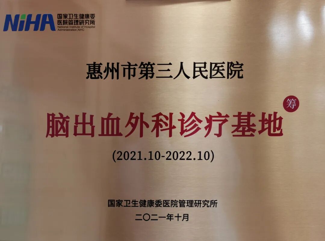 喜報(bào)!惠州三院被授予國家級“腦出血外科診療基地”!