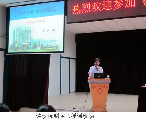 緊接著,許漢標(biāo)副院長(zhǎng)進(jìn)行了第一講“引領(lǐng)優(yōu)質(zhì)護(hù)理,創(chuàng)建和諧醫(yī)院”,許副院長(zhǎng)就如何開(kāi)展優(yōu)質(zhì)護(hù)理服務(wù)及如何建立優(yōu)質(zhì)護(hù)理服務(wù)長(zhǎng)效機(jī)制作了精彩演講,運(yùn)用古今典型案例,引發(fā)學(xué)員思考,臺(tái)下不時(shí)傳來(lái)陣陣掌聲。
