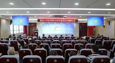 暨南大學醫(yī)學部主任羅良平與惠州三院李雪松院長簽訂了《共建醫(yī)學研究生聯(lián)合培養(yǎng)基地協(xié)議》。隨后,與會領導共同為暨南大學醫(yī)學研究生培養(yǎng)基地揭牌。