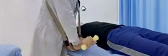 4.關節(jié)松動下的離心收縮訓練:康復師在關節(jié)松動下,囑患者握住啞鈴進行腕屈腕伸活動。