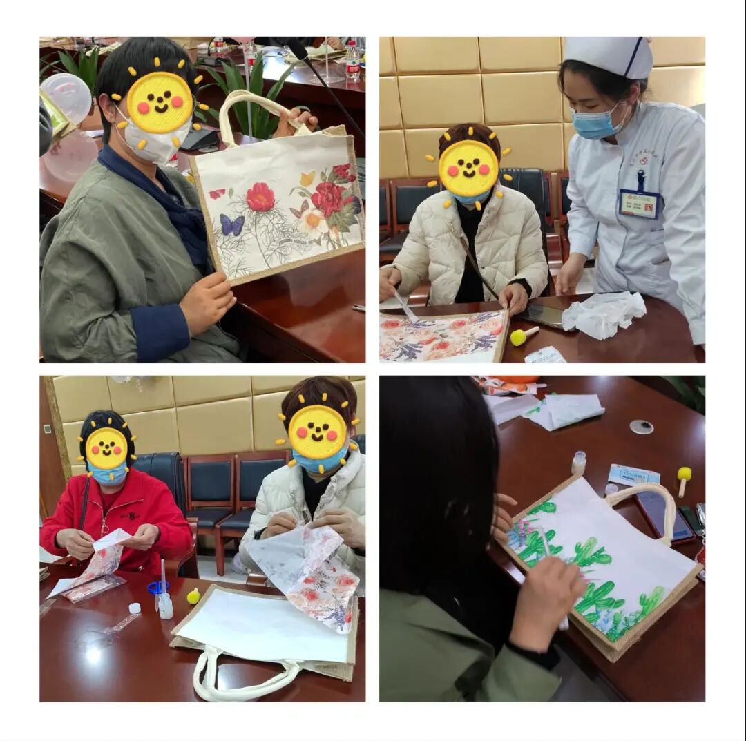 現(xiàn)場還進(jìn)行了手工蝶古巴特包制作。在病友們的積極參與下,一件件精美的作品誕生了,大家紛紛與自己的作品合影,或即時(shí)拍照分享給親友,每個(gè)人的臉上都露出歡樂的笑臉。