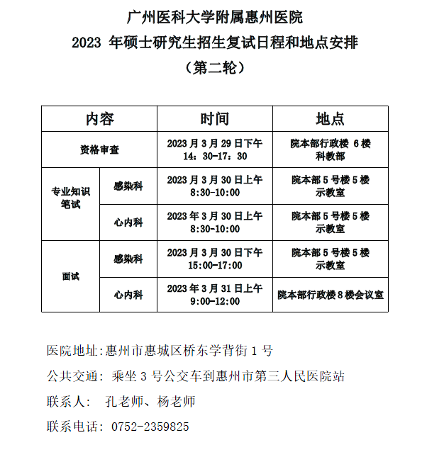 廣州醫(yī)科大學附屬惠州醫(yī)院2023年碩士研究生招生復試日程和地點安排(第二輪)