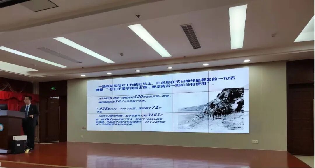 白求恩精神研究會副會長陳天平高度重視人文醫(yī)學建設工作,應邀給惠州市醫(yī)護人員授課,傳播白求恩精神,做了《如何做一名新時代“白求恩式好醫(yī)生”》的主題講座。