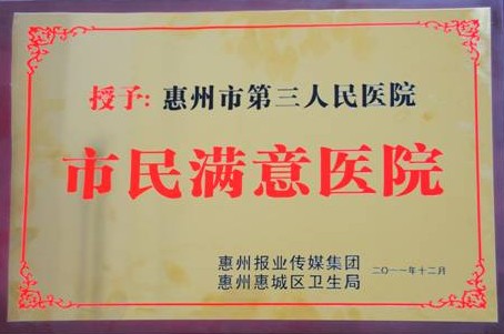 2012年年初喜訊傳來我院——我院被惠州報(bào)業(yè)集團(tuán)和惠城區(qū)衛(wèi)生局聯(lián)合授予“群眾滿意醫(yī)院”榮譽(yù)稱號(hào)!這是廣大市民群眾對(duì)我院2011 年醫(yī)療服務(wù)等各項(xiàng)工作的肯定,全院?jiǎn)T工為此感到欣慰和自豪!