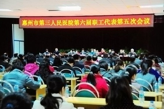 惠風(fēng)和暢,風(fēng)正帆揚(yáng),乘著醫(yī)院政通人和、快速發(fā)展的東風(fēng),2012年1月7日~8日,我院隆重召開(kāi)了第六屆職工代表大會(huì)第五次會(huì)議。參加會(huì)議的正式代表有99名,特邀代表48名?;莩菂^(qū)區(qū)委常委、宣傳部部長(zhǎng)陳娟,惠城區(qū)衛(wèi)生局局長(zhǎng)鄒忠平,區(qū)工會(huì)主席林彩英,工會(huì)副主席李燕紅,組宣部部長(zhǎng)張曉芬等領(lǐng)導(dǎo)出席了本次大會(huì)。