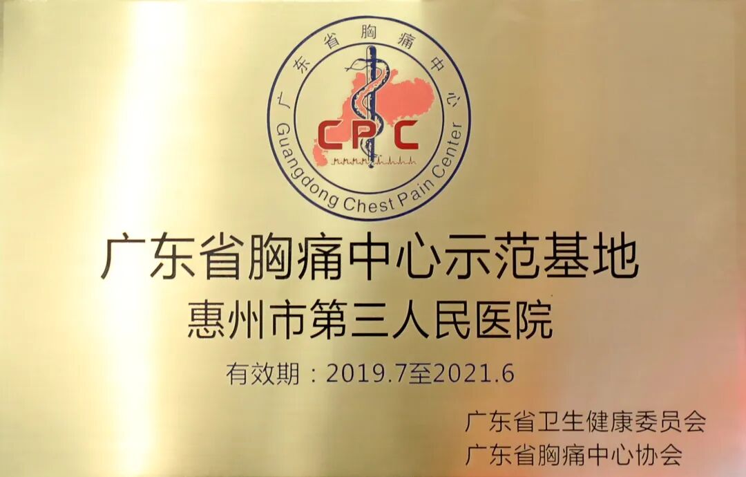 惠州市第三人民醫(yī)院于2017年獲評(píng)粵東地區(qū)首個(gè)“國(guó)家級(jí)胸痛中心”。