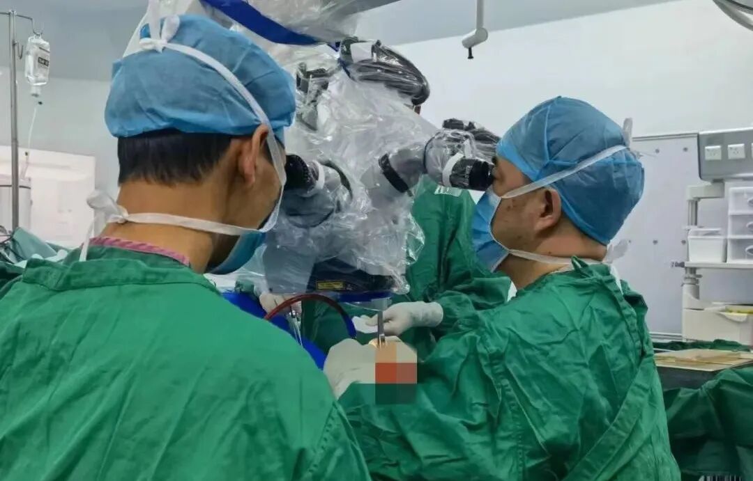 惠州三院院長、神經(jīng)醫(yī)學(xué)中心主任、神經(jīng)外科學(xué)科帶頭人李雪松博士主刀(右)