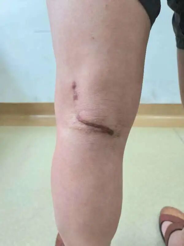 傳統(tǒng)開放手術(shù)切口(左)關(guān)節(jié)鏡微創(chuàng)切口(右)