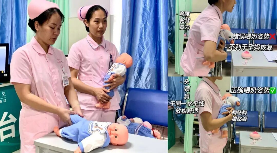 授課結(jié)束后,黃碧來護(hù)士長、陳俊玲主管護(hù)師耐心地為準(zhǔn)媽媽們答疑解惑,并手把手指導(dǎo)準(zhǔn)媽媽們進(jìn)行哺乳,演示如何正確拍嗝,讓大家正確掌握母乳喂養(yǎng)的科學(xué)方法,提高母乳喂養(yǎng)的信心。同時,產(chǎn)科護(hù)理團(tuán)隊還為參加活動的準(zhǔn)媽媽們發(fā)放紀(jì)念禮品,為她們送上一份心意和祝福。