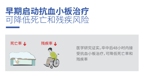 2.早期啟動(dòng)抗血小板治療可降低死亡和殘疾風(fēng)險(xiǎn)。醫(yī)學(xué)研究證實(shí),卒中后48小時(shí)內(nèi)接受抗血小板治療,可降低死亡率和殘疾率。