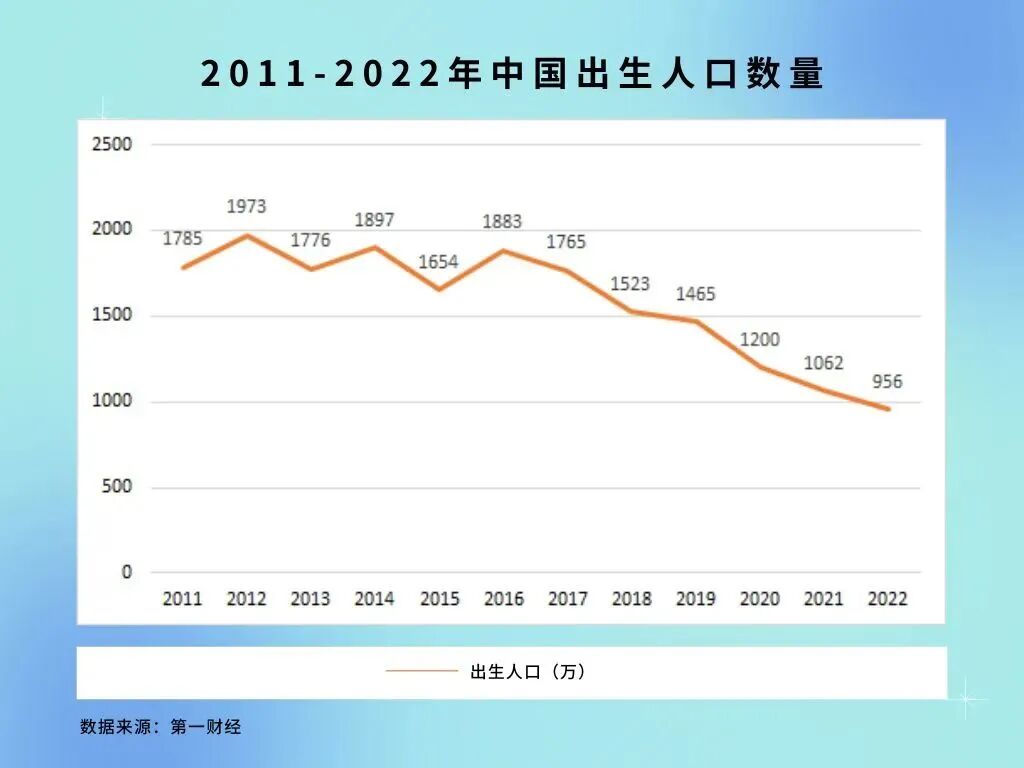 然而短短6年之后,出生人口數(shù)量持續(xù)下降。2022年,我國的出生人口數(shù)為956萬人,已跌破1000萬,只有2016年的一半數(shù)量,創(chuàng)下1949年以來最低紀錄。