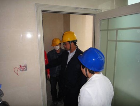 林利育常務(wù)副區(qū)長(zhǎng)等領(lǐng)導(dǎo)一行下車(chē)后立即前往綜合大樓工地現(xiàn)場(chǎng)檢查建設(shè)進(jìn)展情況,我院馬顯力院長(zhǎng)等行政班子成員陪同檢查。林常務(wù)副區(qū)長(zhǎng)一邊聽(tīng)取馬顯力院長(zhǎng)介紹綜合大樓的施工進(jìn)展及大樓配套設(shè)備的采購(gòu)情況,一邊仔細(xì)檢查大樓的施工質(zhì)量,現(xiàn)場(chǎng)詢(xún)問(wèn)了貼墻面磚、手術(shù)間及其X線防護(hù)等具體的施工工藝,并肯定了大樓的施工質(zhì)量,同時(shí)要求以質(zhì)量、安全為第一的前提安排好建設(shè)進(jìn)度,保證大樓如期完工。