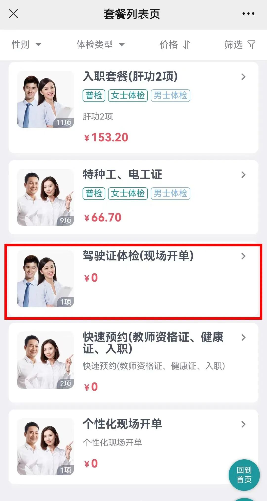 1.套餐介紹:提供機動車駕駛證每年所需的駕駛員體檢證明