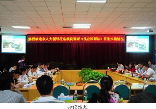 4月17日下午,市人大常委會副主任華紅同志率隊對我院貫徹實(shí)施《中華人民共和國執(zhí)業(yè)醫(yī)師法》的情況進(jìn)行了專題調(diào)研。本次市人大調(diào)研旨在了解我市在貫徹實(shí)施《執(zhí)業(yè)醫(yī)師法》方面的做法、成效,總結(jié)存在的主要問題及匯集各方意見和建議,以加大貫徹實(shí)施工作力度,促進(jìn)我市醫(yī)療隊伍建設(shè),提高醫(yī)療救治水平。本次調(diào)研座談會由市人大教科文工委主任黃贊基同志主持,市人大調(diào)研組成員、市衛(wèi)生局、區(qū)政府及有關(guān)部門領(lǐng)導(dǎo)、市三院領(lǐng)導(dǎo)班子及臨床科主任參加了座談會。