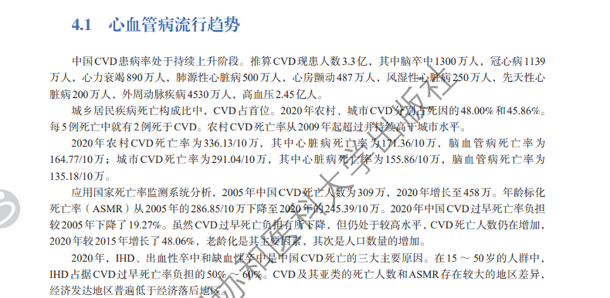 根據(jù)《中國心血管健康與疾病報告2022》,城鄉(xiāng)居民疾病死亡構(gòu)成比中,心血管病斷層第一。2020年,在農(nóng)村、城市死因占比分別高達48.00%和45.86%,每五例死亡中就有兩例死于心血管疾病。