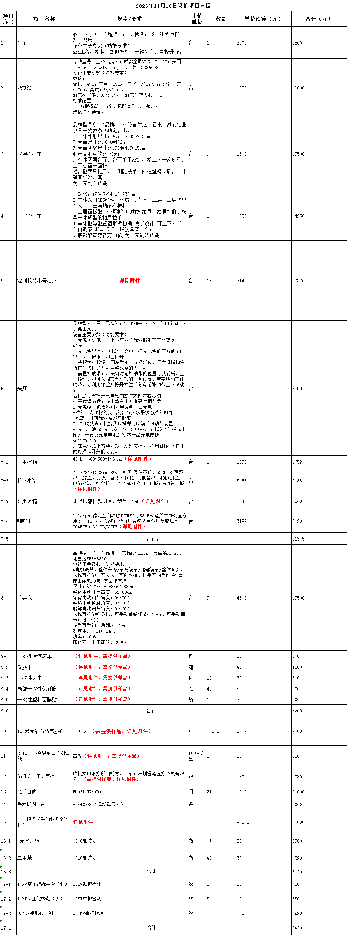 一、項目名稱:20231110議價項目