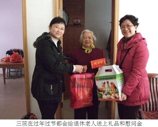 惠州市第三人民醫(yī)院到現(xiàn)在為止共有離退休人員214人,對(duì)于老年人的工作主要是由人力資源部和醫(yī)院工會(huì)負(fù)責(zé)。正是因?yàn)檫@兩個(gè)部門(mén)的工作人員本著為退休老人服務(wù)的思想在閃光,才讓退休老人感覺(jué)到單位與他們之間沒(méi)有任何距離,只有親切和溫暖。她們不僅在家里是父母的好女兒,在這個(gè)退休的大家庭里,她們也扮演著“孝女”的角色。