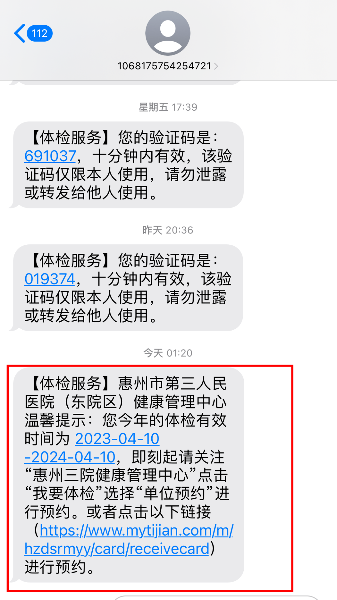 1.團檢開始,客戶會收到短信,直接點擊短信鏈接預(yù)約體檢。(首次登陸,需獲取驗證碼。)