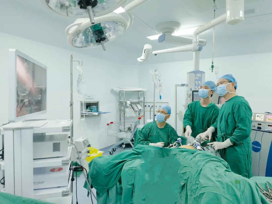 確定好手術(shù)方案后,在婦科陳淳淵副主任醫(yī)師的協(xié)助和麻醉科的護航下,楊偉忠主任成功為李女士實施了我院首例“腹腔鏡下膀胱嗜鉻細胞瘤切除術(shù)”,將異位于膀胱內(nèi)的嗜鉻細胞瘤完整切除,術(shù)中未出現(xiàn)難以控制的血壓波動。日前患者已痊愈出院。