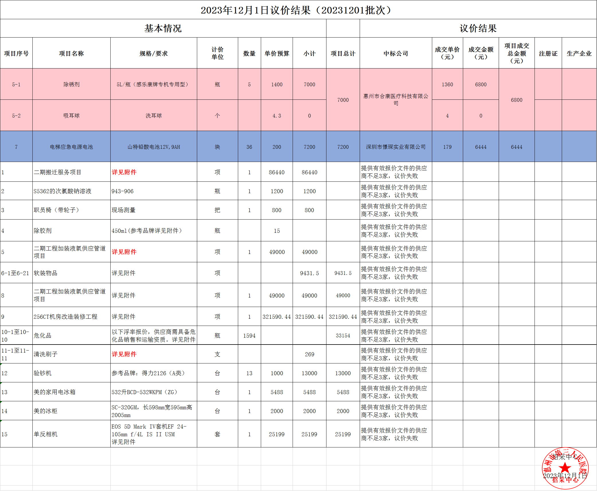 2023年12月1日議價(jià)結(jié)果公示