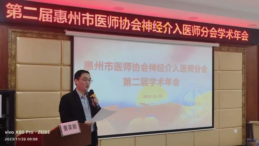 惠州市醫(yī)師協(xié)會神經(jīng)介入醫(yī)師分會主任委員景英朝教授主持會議