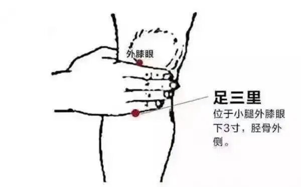 定位方法:足三里在小腿前外側(cè),犢鼻(外膝眼)下3寸,脛骨外側(cè)一橫指,犢鼻與解溪連線上。