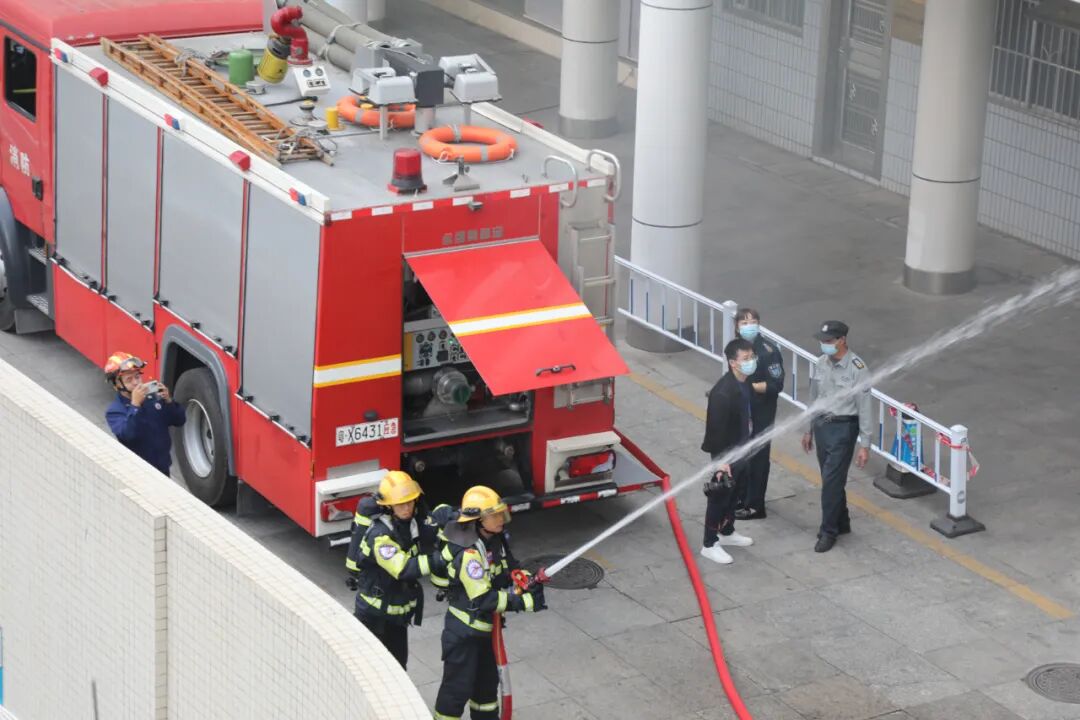 第二梯隊2名消防保安到達后使用消防水槍進行滅火。