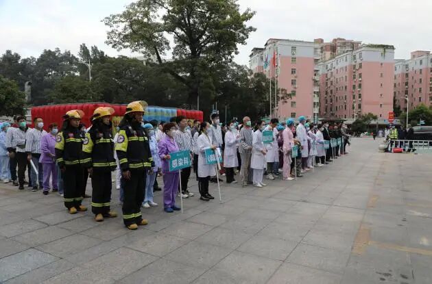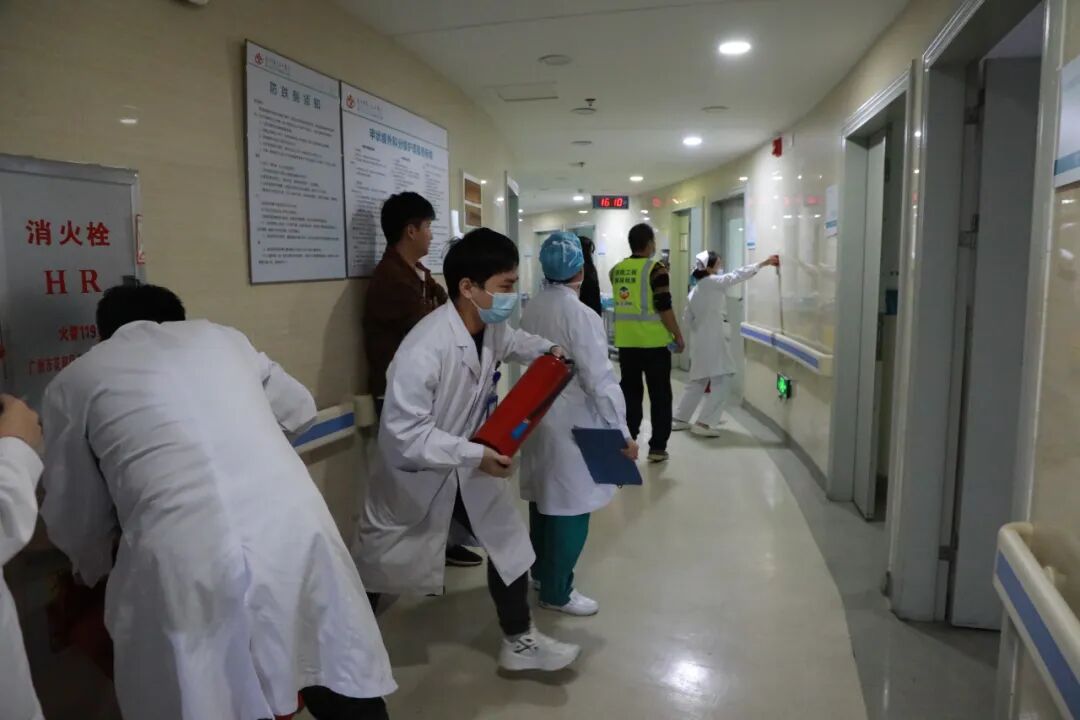 惠州三院臨床、醫(yī)技、職能科室主任,醫(yī)生、護士、保安、保潔、運送人員等近200人參加了此次消防演練。