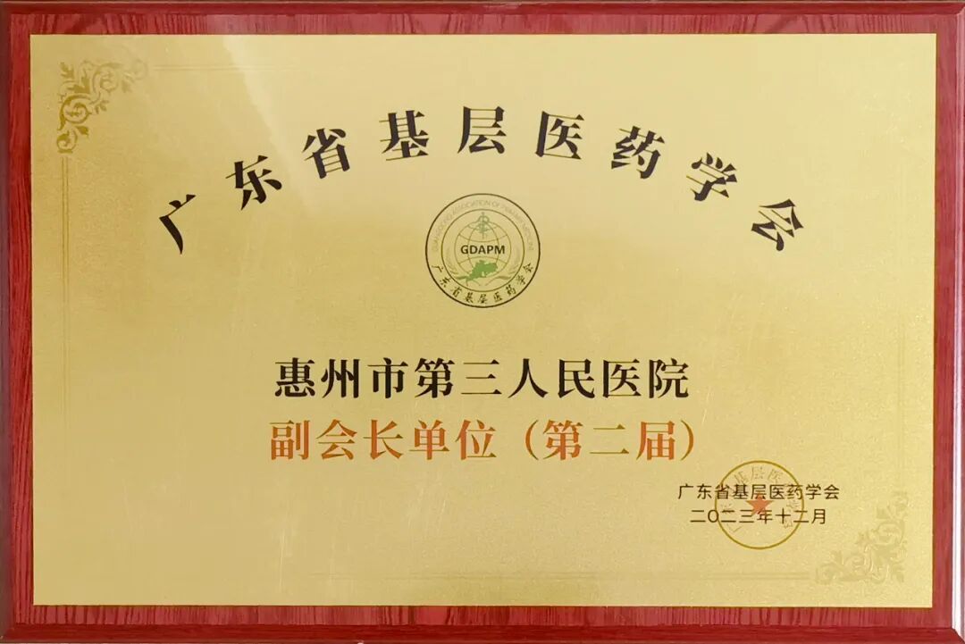 2023年12月8日,惠州市第三人民醫(yī)院當(dāng)選廣東省基層醫(yī)藥學(xué)會(huì)副會(huì)長(zhǎng)單位,李雪松院長(zhǎng)當(dāng)選廣東省基層醫(yī)藥學(xué)會(huì)副會(huì)長(zhǎng)。
