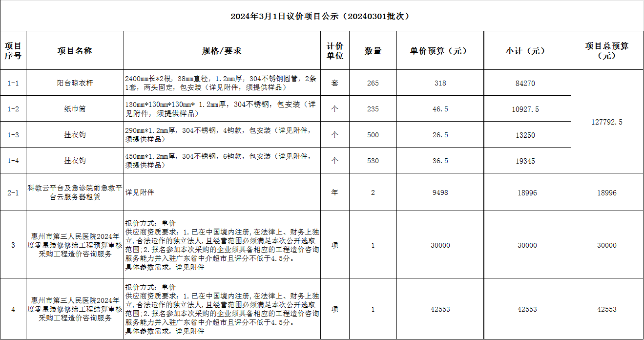 惠州市第三人民醫(yī)院擬定一批采購項目進(jìn)行議價采購,歡迎符合資格條件的投標(biāo)人投標(biāo)。