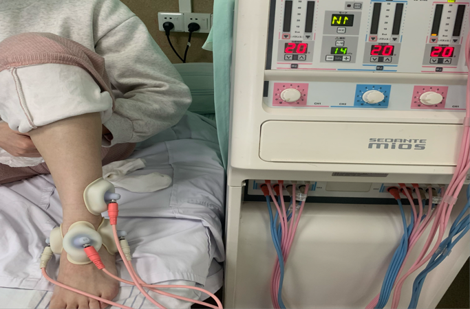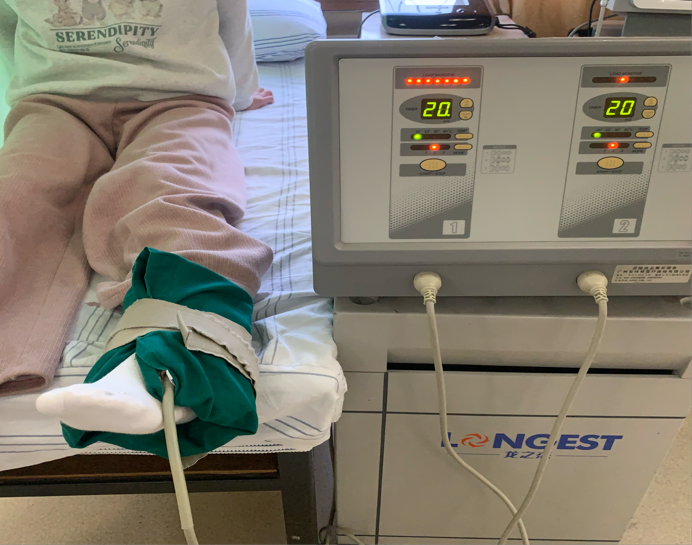 3.干擾電治療:干擾電對流對感覺神經(jīng)末梢有抑制作用,從而起到鎮(zhèn)痛效果,其作用時間長,有利于水腫和血腫吸收。