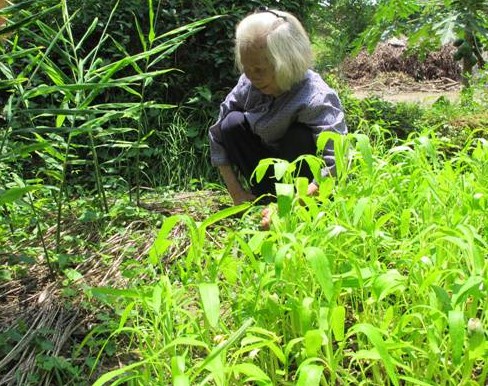 經(jīng)過(guò)長(zhǎng)途跋涉,我們終于來(lái)到蘆洲鎮(zhèn)。當(dāng)我們走進(jìn)阿婆的家里,卻發(fā)現(xiàn)阿婆并不在屋里,原來(lái)她正在她的菜地里除草,地里種著空心菜,在阿婆護(hù)理下長(zhǎng)勢(shì)甚好。