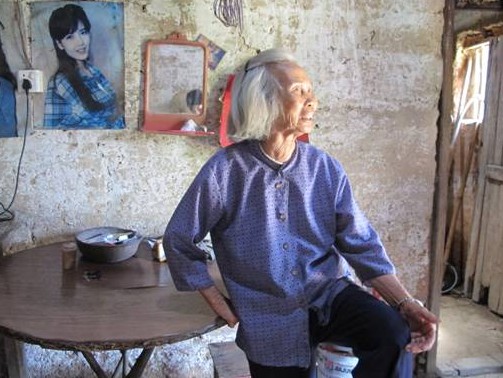 當(dāng)阿婆看到我們來(lái)探訪她時(shí)非常高興,她把我們帶回屋里,進(jìn)到屋里,我們看到屋里很簡(jiǎn)陋,只有一張桌子和幾張椅子,墻上貼著幾張阿婆的女兒年輕時(shí)喜歡的明星海報(bào)。自從阿婆女兒出嫁之后,就剩下她一個(gè)人在這里過(guò)著自給自足的生活。