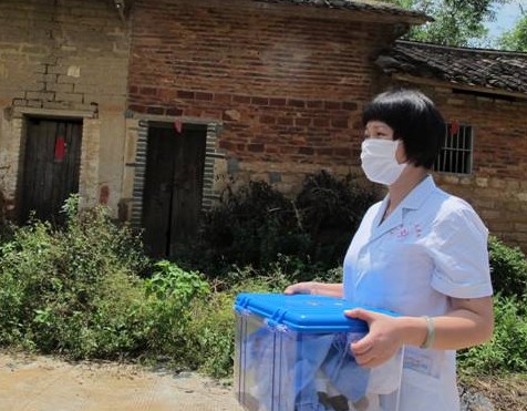 6月5日,有記者跟我們醫(yī)護(hù)人員一起到蘆洲鎮(zhèn)回訪了一位白內(nèi)障患者——一位70多歲的阿婆。