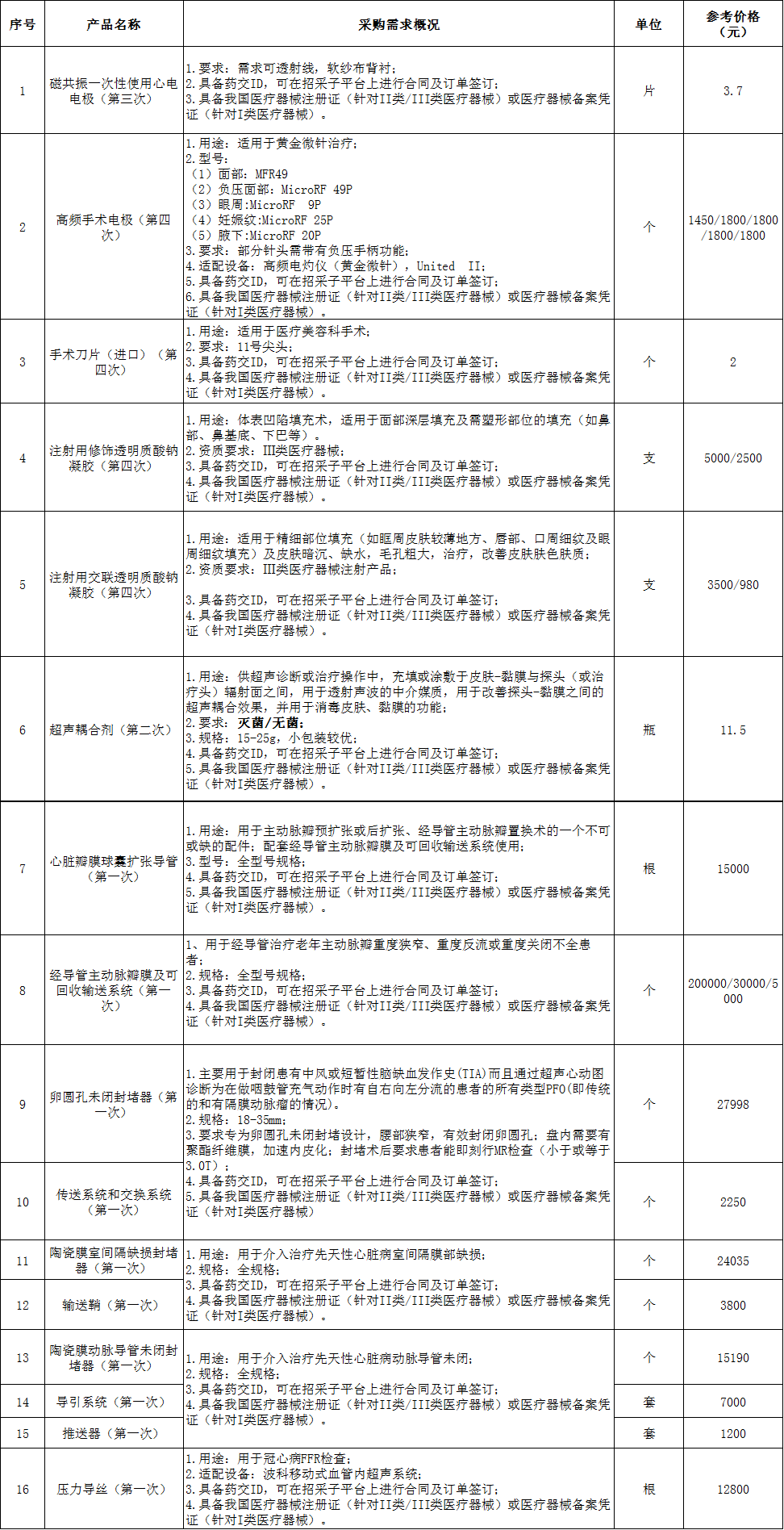 (5)如報名多個醫(yī)用耗材項目,應(yīng)將所需報名的醫(yī)用耗材產(chǎn)品談判填入報名產(chǎn)品明細(xì)表,明細(xì)表必須以表格形式提交。