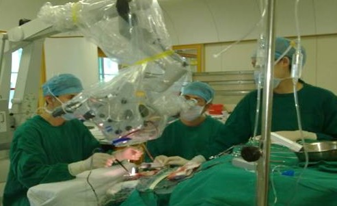 2012年4月20日,又是一個值得慶賀與紀(jì)念的日子。我院首例完全獨立進(jìn)行的顯微神經(jīng)外科手術(shù)——顯微鏡下腦腫瘤切除手術(shù)獲得成功!這一手術(shù)的成功,標(biāo)志著我院神經(jīng)外科顯微手術(shù)技術(shù)已經(jīng)走向成熟。