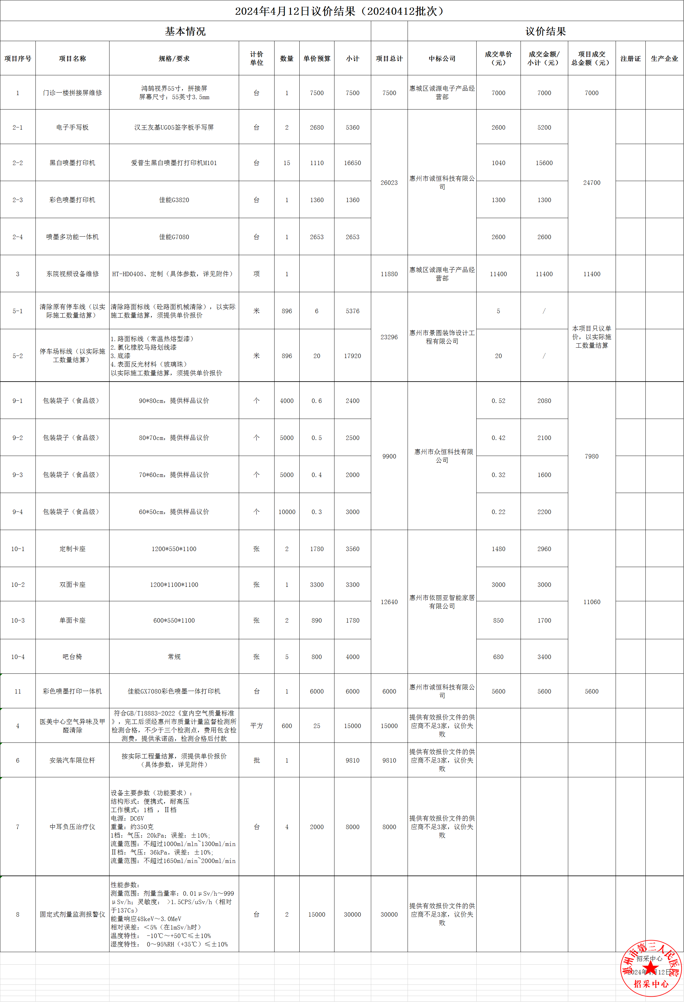 2024年4月12日議價(jià)結(jié)果公示