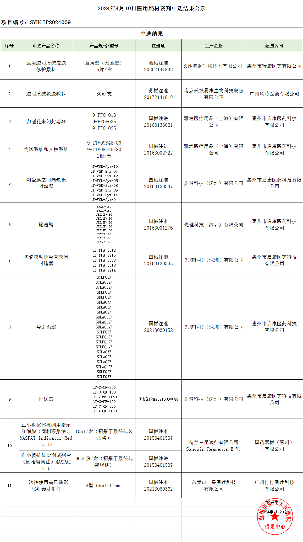 2024年4月19日醫(yī)用耗材談判中選結(jié)果公示